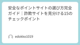 初心者ガイド 安全なポイントサイトの選び方完全ガイド|詐欺サイトを見分ける15のチェックポイント この記事でわかること✅ 安全なポイントサイトと危険なサイトの違い✅ 詐欺サイトを見分ける15のチェックポイント✅ 運営会社の信頼性を確認する具体的な方法✅ 実際にあった詐欺被害の事例と回避方法✅ 初心者が安心して始められる大手サイト10選「... 2025.09.20 初心者ガイド